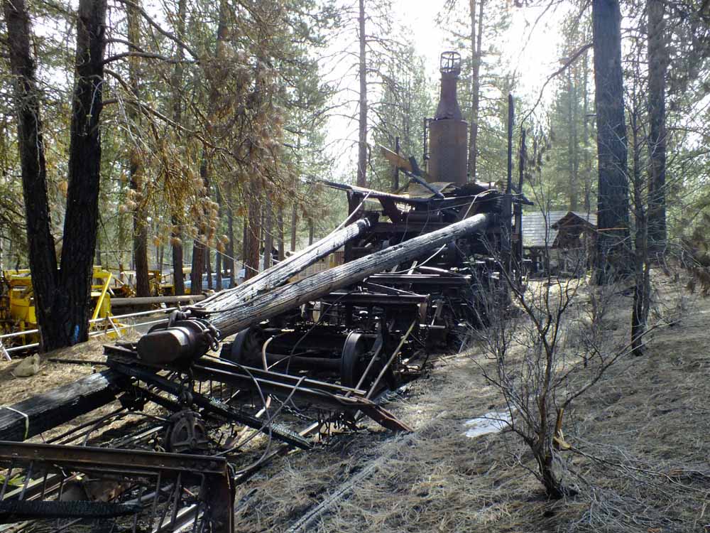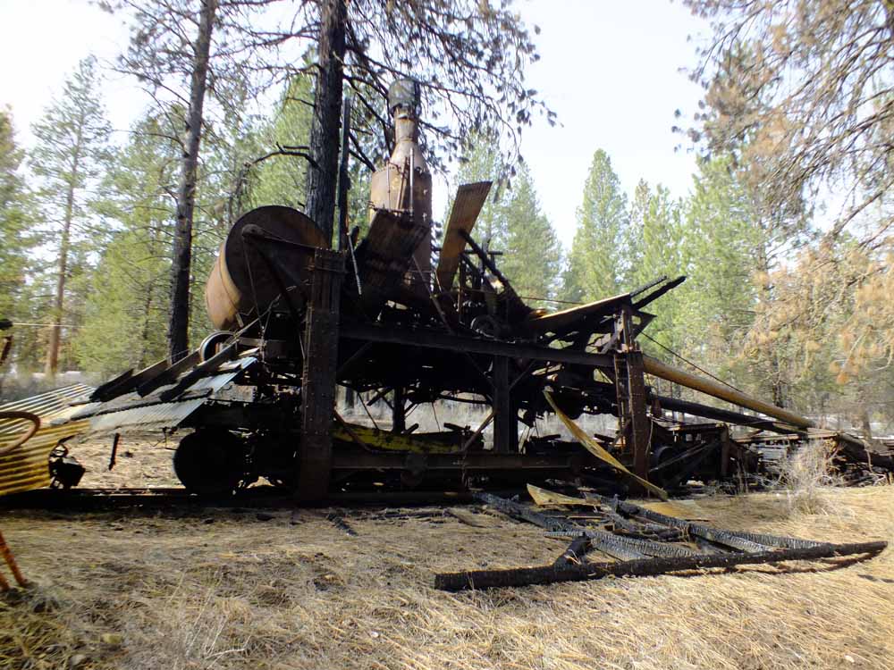 The former McCloud River Railroad McGiffert loader #1751:1 as it appeared in the Collier State Park logging museum collection near Chiloquin, Oregon, until the Two Four Two fire burned over the machine in September 2020. Jeff Moore photo. |