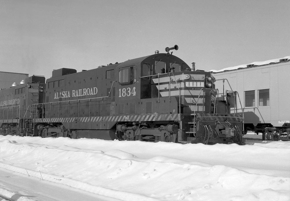 Alaska Railroad #1834 in Anchorage, Alaska, on 18 March 1973. Unknown photographer.