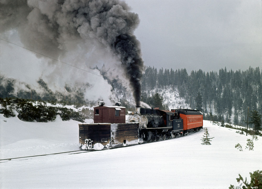 The Pacific Locomotive Association winter trip became one of the staples of McCloud River steam excursions in the last half of the 1960s and first half of the 1970s. The PLA varied the routing and consist from one year to the next so that photographers could get new pictures. The PLA winter trip operated every year from 1964 until 1975 save for three. In 1969 the club tried running the trip with the Baldwin diesels that were scheduled for retirement that spring, but low ticket sales forced the trip to be cancelled. Then, in 1970 the railroad planned for the #25 to be withdrawn from service after the end of the year, and though the change of heart gave the excursion program a new lease on life it came too late for a 1971 winter trip, and the locomotive was in the shop getting the boiler work during that the time of year the trip would have run anyway. Finally, no trip ran in 1974 due to a variety of mostly economic factors. This page contains a random selection of photos from some of the winter trips held between 1965 and 1970. |