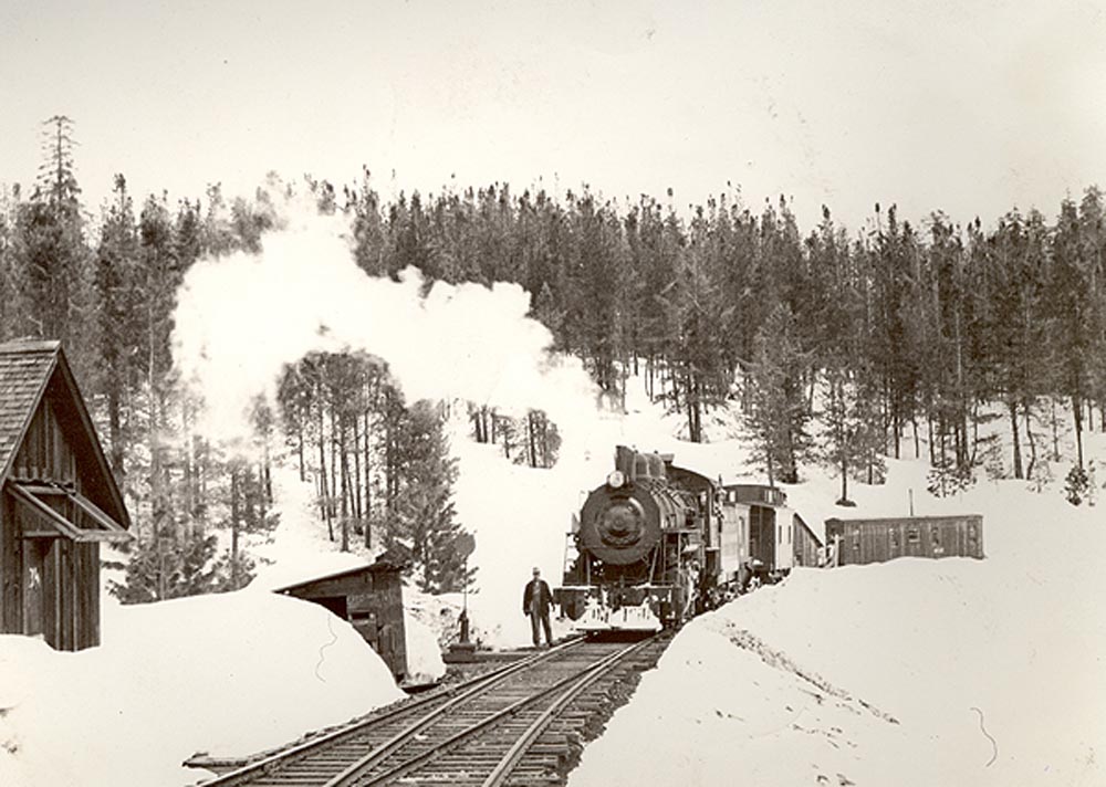 The snowplow train departing Signal Butte for McCloud. Muma collection, courtesy Travis Berryman. |
