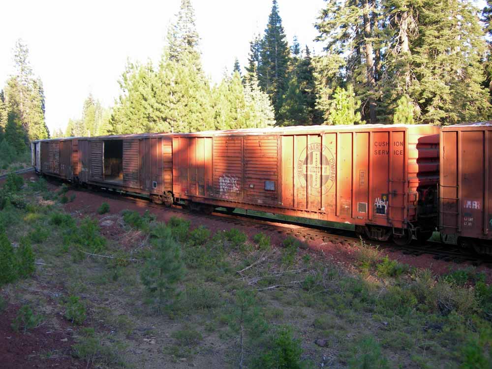 Photo by and courtesy of John West. ![]() As noted above, the McCloud Railway gained title to seventeen boxcars as partial payment for shop work the company did for GE Capital. The railroad cut six of the cars down to gondolas for help in the salvage efforts during the summer and fall of 2008. The cut down cars were stored in Ash Creek Junction until scrapped around 2012. |