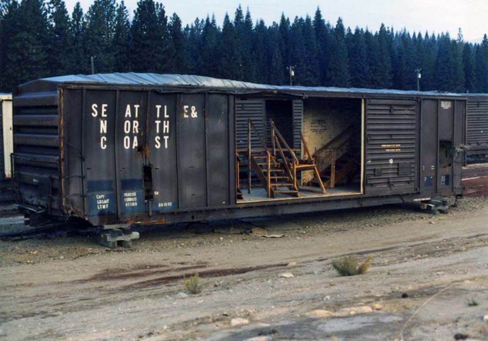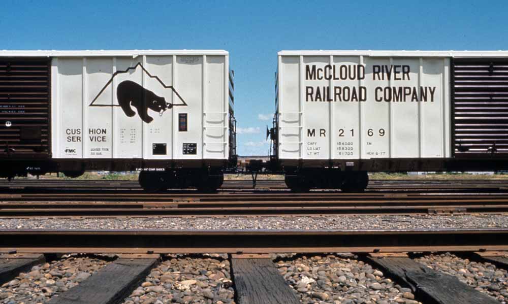 parts of the North American continent. The railroad had investigated leasing or purchasing interchange freight cars at several points during its history, especially during years under U.S. Plywood ownership- for example, on 27 August 1965 McCloud president Flake Willis requested that the Western Pacific lease to McCloud one hundred 40' boxcars from their 20000 and 21000 series that would have been placed in service carrying US Plywood markings. The calculations changed substantially in the middle 1970s thanks to several factors. First was the generally poor financial shape of the railroad industry as a whole, which dried up dollars available for investments in new equipment. Second was the per diem rate structure then in place, meaning the amount of money a railroad pays the registered owner railroad of a railcar for the time the car spends on its tracks; these rates were set low enough for plain boxcars that revenues earned from per diem payments did not cover the cost of car ownership, which is the major factor that kept the McCloud River Railroad out of the car owning or leasing business prior to 1977. The rates also had the effect of driving the vast majority of new equipment investment towards specialized railcars that earned higher per diem revenues. One result of these factors was that the nation's boxcar fleet declined from 546,000 in 1964 to 372,000 in 1970, which quickly created a nationwide boxcar shortage, especially in the northeastern United States. Western railroads at the time still generated a lot of boxcar traffic destined for eastern markets, especially lumber, and as the shortage grew the eastern roads tended to keep boxcars from the west on their roads to handle their traffic. The disparity between car ownership costs and per diem revenues for boxcars in lumber service started to hurt the western roads; as an example, Southern Pacific in the early 1970s determined it was losing money on its California and Oregon lumber traffic, at the time one of the larger segments of its business, entirely because of low per diem revenues on its lumber cars trapped in the east. The growing problems and impacts to the national freight rail network the boxcar issue created prompted the Federal government to respond with two major incentives, first to significantly raise per diem rates on plain boxcars and second to create tax credits for those investing in new or rebuilt boxcars. Alert investment bankers and venture capitalists saw opportunity and commenced making substantial ivestments in new cars through several companies, principally Itel Rail and Brae Corporation. The hitch though was these companies had to act through railroads in order to access the per diem markets; Itel partially solved this by buying some railroads, including the McCloud River Railroad, but the vast majority of the new boxcars bought by the bankers would have to be leased to railroads. The boxcar owners found many willing ears in the world of shortline railroads and focused much of their marketing efforts on shortlines in the western United States that generated a lot of lumber loads, mostly under the working theory that all a shortline had to do was load a leased boxcar with lumber headed to and eastern market, as once there the boxcar would be kept busy in that region and earn substantial revenues for both the leasing shortline and boxcar owner. Thus was born what became known as the Shortline Boxcar Boom, when the nation's railroads were suddenly flooded with often brightly painted boxcars lettered for what had in many cases been obscure shortlines. Itel Rail completed its purchase of the McCloud River Railroad in early 1977. One of their first acts was to lease 405 new boxcars to the railroad for a period of 15 years. Railcar builder FMC built McCloud's new boxcars at their Portland, Oregon, plant in May and June 1977. Itel had 100 cars routed to McCloud for publicity shots and loading on the road while the remaining 300 cars were released from the plant directly into the nationwide railcar pool. The lease terms were fairly standard for pretty much all such boxcar leases between the owners and the leasing roads; in this case the McCloud River agreed to pay Itel the higher of the following two amounts: a. An annual per-car rental of $3,970 for the first five years, $3,590 for the second five years, and $3,210 for every year thereafter that the boxcars remained leased; OR, b. All revenues McCloud River earned on these cars if the aggregate fleet utilization averaged ninety percent or less. If the aggregate fleet utilization exceeded ninety percent, Itel would receive an amount equivalent to the base lease rate plus one-half of revenues earned in excess of the base rate. Both Itel and McCloud River Railroad initially earned good money off these boxcars for a few years, though Itel almost immediately subleased 250 of the cars to other shortlines. However, significant nationwide rail traffic declines associated with the recessionary years of the early 1980s and the loss of a lot of what had been boxcar traffic to either trucks or intermodal containers suppressed boxcar demand, and then the major railroads discovered that incentive per diem payments on all the new boxcars often exceeded the revenues they earned moving the loads they contained. Southern Pacific retaliated by implementing a $500 per carload surcharge against all loads carried in incentive per diem boxcars belonging to railroads not owned by any of their major shippers, and similar actions taken by other Class 1 carriers along with political activity quickly got the Federal government to end incentive per diem payments and abolish the tax shelters the cars had provided. Most lessee roads simply turned the cars back to the lessors. Thanks to traffic declines of its own the McCloud River had plenty of available yard, siding, and spur space to suddenly store the long lines of nearly new boxcars Itel owned that nobody wanted anymore, and McCloud's eq