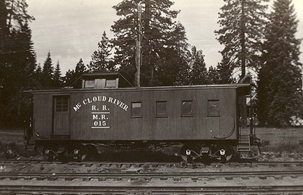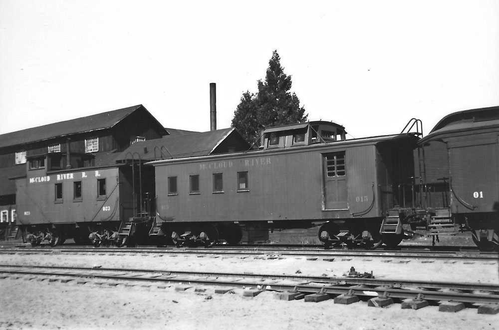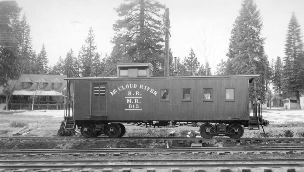Caboose #015 next to the depot in McCloud. Travis Berryman collection. |