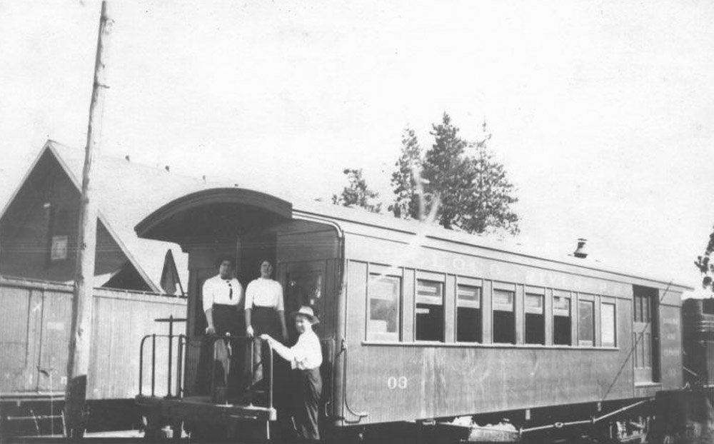 | Coach #03 at the McCloud depot before the cupola. Photograph courtesy of Heritage Junction Museum of McCloud, Inc. |