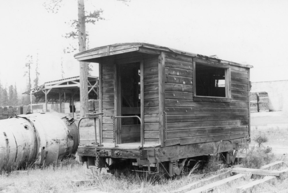 | The lumber company usually pulled this crew car with its Plymouth switchers. Pacific Northwest Virtual Logging Data Center. |