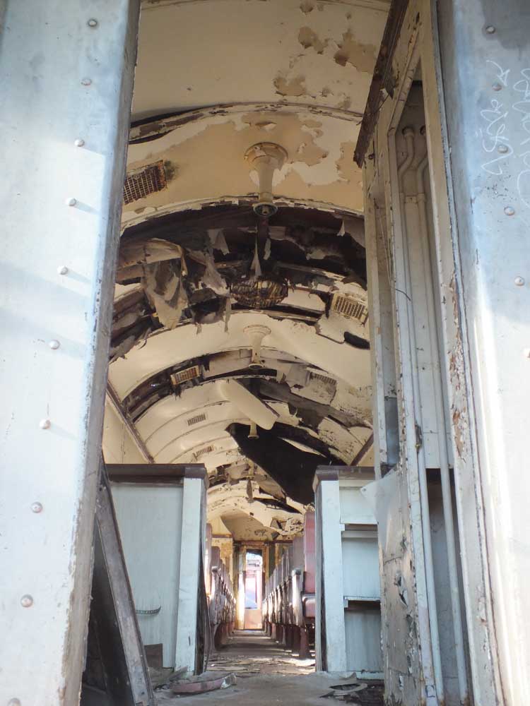 with the railroad name is fancy script above the windows. The shops removed the seats from the #1949 as part of plans
