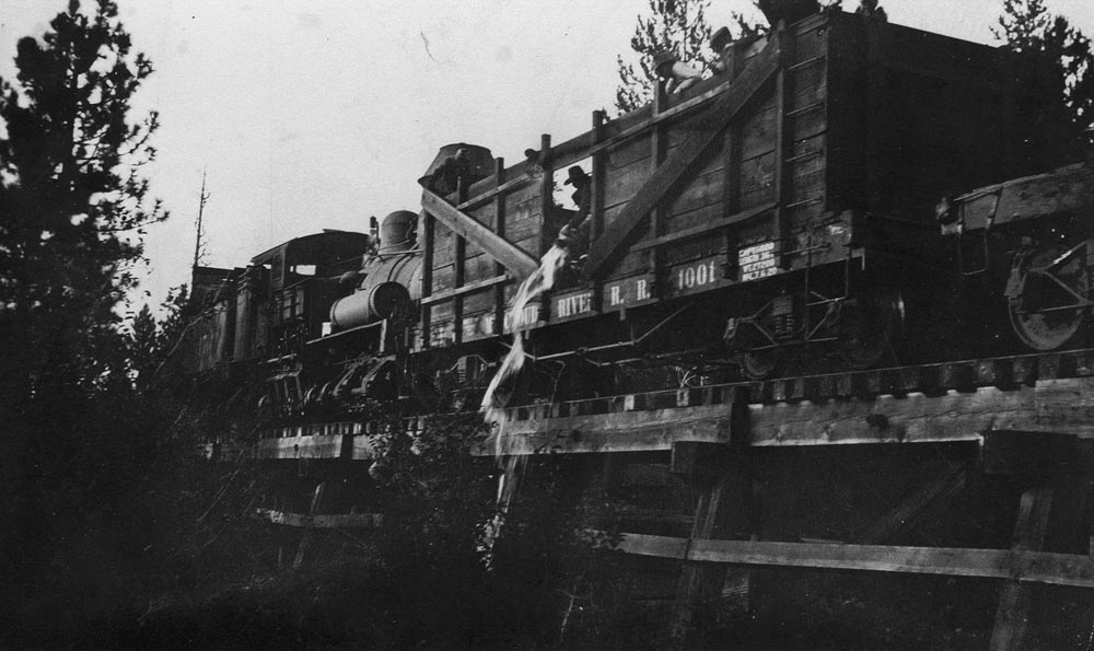 of the #1001 and one of the Shay locomotives, would be spotted on trestles over the river, where