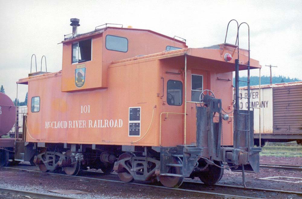#101 brings up the rear of a Burney bound freight in the late 1980s. Lee F. Hower photo.