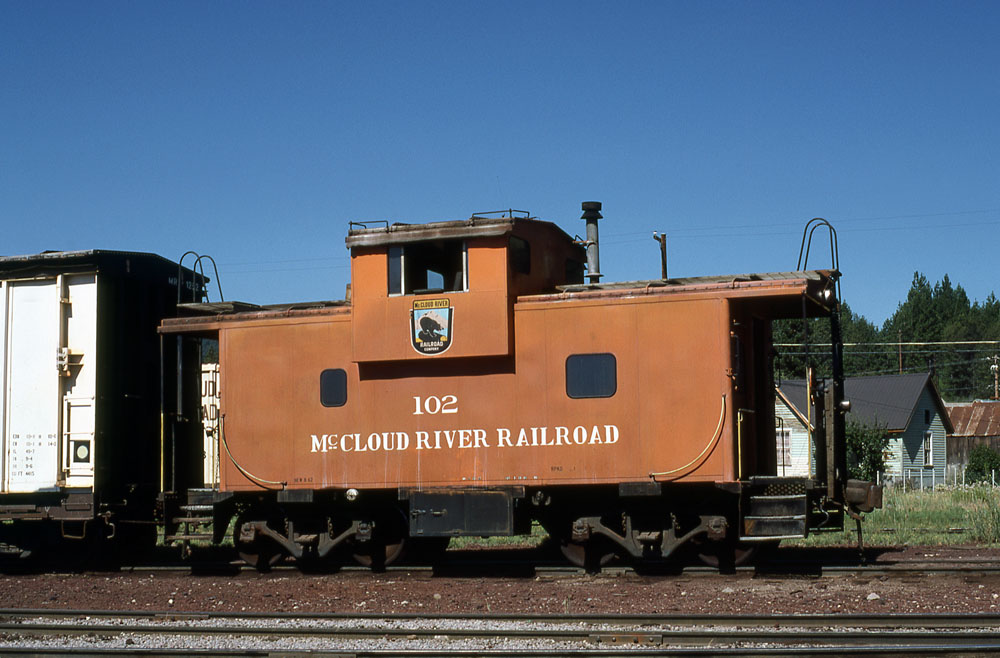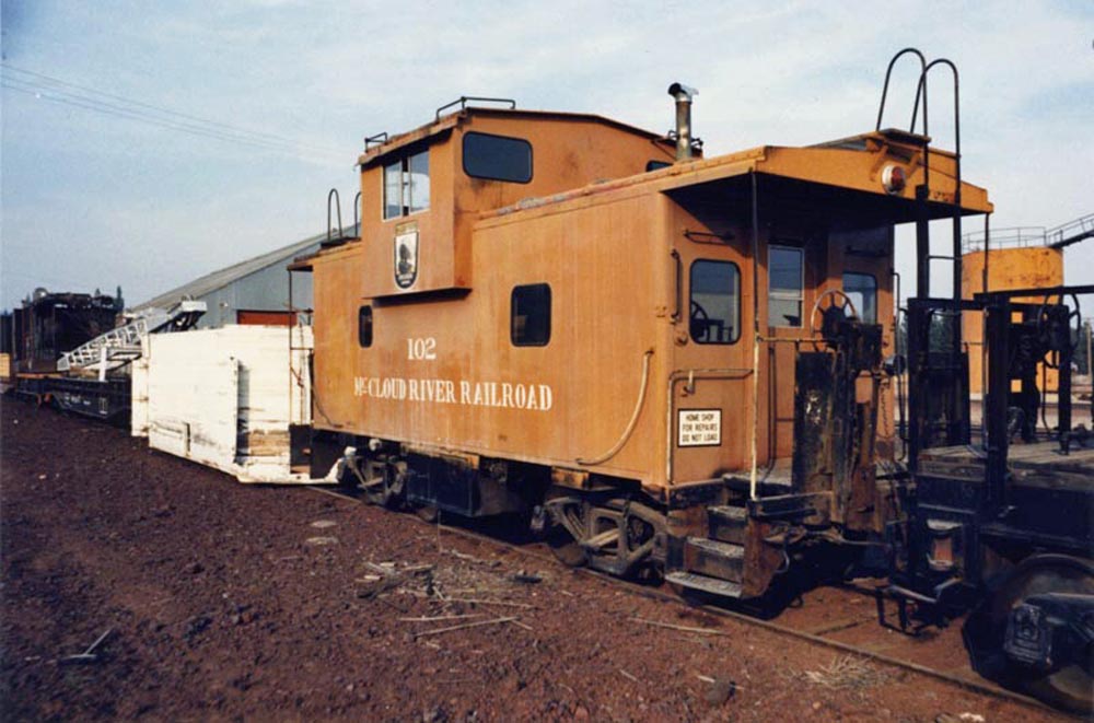 #102 stored in the McCloud yards. Pat Driscoll photo, Jeff Moore collection.