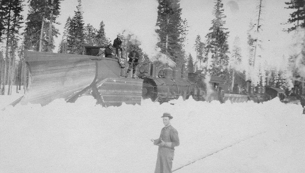 The #14 and #15 are powering a plow train using the #1701 clearing four feet of snow on the way to Algoma in February 1909. Jeff Moore collection.