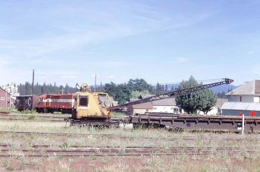 The #1851 parked in the yards in the 1970s while the yard switcher works the McCloud sawmill in the background. George Landrock photo. |