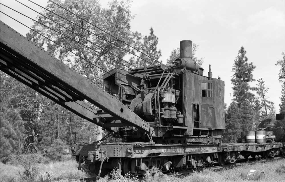 #2331 behind Crane #8 in Burney, probably prior to 1959. Pacific Northwest Virtual Logging Data Center.