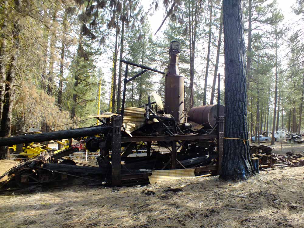 The former McCloud River Railroad McGiffert loader #1751:1 as it appeared in the Collier State Park logging museum collection near Chiloquin, Oregon, until the Two Four Two fire burned over the machine in September 2020. Jeff Moore photo. |