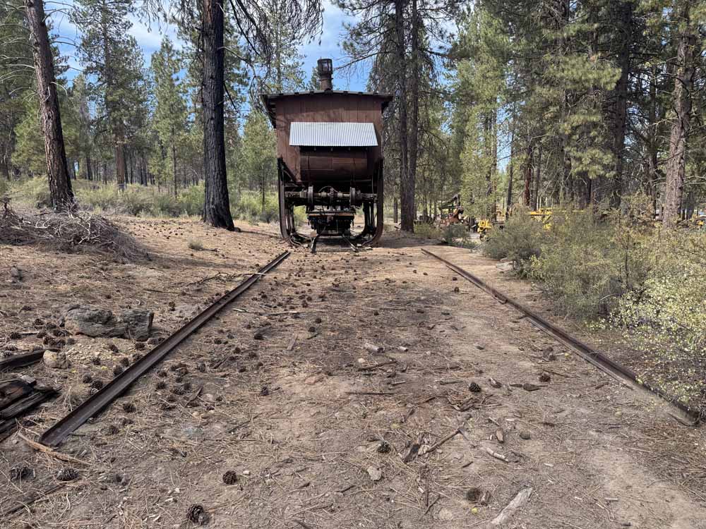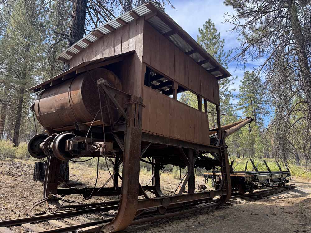 Several groups stepped forward with assistance offers to rebuild the McGiffert and the three Brooks-Scanlon Lumber Company log flats displayed with it, which resulted in a complete cosmetic restoration of the machine completed by 2025. Jeff Moore photos. |