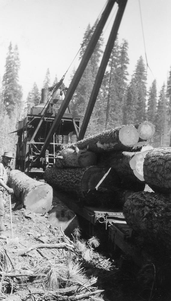 Another shot of a McGiffert loader working in the woods near Pondosa. Photo from the Jeff Moore collection. |