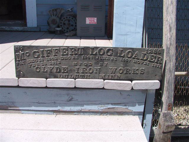 Once railroads became an integral part of logging, a means of loading logs onto railcars had to be developed. A number of different machines to accomplish this task were invented. One of the more successful types of loaders in the pine woods of the Intermountain West was the McGiffert Loader. John R. McGiffert invented the McGiffert loader, and the machines were manufactured by the Clyde Iron Works of Duluth, Minnesota. The McGiffert was a large, somewhat awkward looking machine. The boiler and spools were mounted on a platform that was elevated over the tracks. The entire machine sat on legs that rested on the ground on either side of the tracks. The McGiffert was self-propelled, as it had a chain-driven drive axles that moved the machine along the rails. The wheels were retracted up against the botton of the platform when the machine was set up to load cars. When set up to load cars, the McGiffert straddled the tracks, and empty log cars were shoved underneath the loader. The log cars would then be rolled through the loader, with logs loaded onto the cars by a boom off of one side of the loader. The first McGifferts appeared in the woods around 1902. Nearly a thousand of these machines would be built between then and around 1930, when production ceased. According to company documents and a roster compiled by John Taubeneck, the McCloud River Lumber Company owned at least six of these McGiffert loaders. They were as follows: • McGiffert #678, built 4/1907 as McCloud River Railroad Company #1751:1. Cost $5,570, plus $1,221.75 freight to Upton, $100.22 to set up, $988.66 for chains, $48.39 for freight on chains, and $272.09 allowance on set-up account. To McCloud River Lumber Company 5/31/1922; to Kesterson Lumber Company, Dorris, California, circa 1925/1926; to Weyerhaeuser Timber Company, Klamath Falls, Oregon, 1929. Donated circa 1961 to Collier Memorial State Park, Chiloquin, Oregon. On display at Collier, one of six or seven known surviving McGifferts. Machine heavily damaged in the Two Four Two fire in September 2020. • McGiffert #697, built 4/1907 as McCloud River Railroad Company #1753:1. Cost $5,570, plus $1,202.20 freight to Upton, $100.22 to set up, $988.66 for chains, $48.39 for freight on chains, and $272.09 allowance on set-up account. To McCloud River Lumber Company 5/31/1922; Further disposition unrecorded. • McGiffert #698, built 4/1907 as McCloud River Railroad Company #1755:1. Cost $5,570, plus $573.60 freight to Upton, $100.22 to set up, $988.66 for chains, $48.39 for freight on chains, and $272.09 allowance on set-up account. To McCloud River Lumber Company 5/31/1922; Further disposition unrecorded. • McGiffert #1205, built 2/26/1917 for A. Guthrie & Company, Casway, Washington. To Cascade Lumber Company, Cle Elum, WA, 1918; to Forest Lumber Company, Pine Ridge, Oregon, 1925; to McCloud River Lumber Company, Bartle, CA, circa 1942. Seen in use on the McCloud as late as the mid-1960s. • McGiffert #1223, built 7/5/1918 for Brooks-Scanlon Lumber Company, Bend, Oregon. To McCloud River Lumber Company, Esperanza, California. • McGiffert #1286, reported in use on the McCloud River Lumber Company at Burney, California, in 1927, which cannot be completely correct...Pondosa is far more likely. Heritage Junction of McCloud museum has the builders plate in its collection. Surviving records tend to suggest the McCloud operations used McGiffert loaders in two district era, the first from 1907 until the middle 1920s when the donkey boom loaders detailed in the McCloud River Lumber Company section of this website replaced them. The second era started in the late 1920s when tractors replaced the steam donkeys. The use of McGifferts in the McCloud woods appeared to have ceased by the early 1960s, especially after the lumber company mounted a gas powered shovel on a frame over the tracks to replaced the old loaders. As noted, only six or seven of the machines are known to exist today. Two of them are on display at the logging museum in Collier Memorial State Park at Chiloquin, Oregon; two more are in the Southern Forest Heritage Museum in Long Leaf, Louisiana; one more is on display at a museum in Duluth, Minnesota, and the sixth rests upside down and buried in a lakebed in British Columbia. The possible seventh was reported to be on display in El Salto, Durango, Mexico, as late as 1999 and may still be there. The McGiffert loader on display in Duluth does have a McCloud connection. Clyde built it on 1/6/1923 as its construction number 1260 for the Weed Lumber Company in nearby Weed, and it spent almost its entire career in the woods north and east of Mt. Shasta wording for Weed and its corporate successor Long-Bell. In 1956 Long-Bell sent the loader to McCloud to load logs the company harvested from the Hearst Estate properties southeast of McCloud, and it remained in McCloud after that job ended until 1978 when Long-Bell successor International Paper donated it to the Lake Superior Railroad Museum in Duluth. |