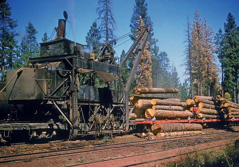 A color shot of one of the McGifferts loading log cars near Burney in 1958. Photo by and courtesy of John West. |
