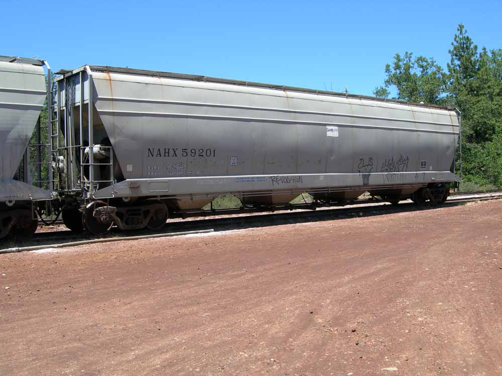 MR #12105 in Fresno, California, in March 2003. Peter Arnold photo. 45100-45189: HTS class 47-foot, 4-inch, 3600- cubic feet, 100-ton capacity rotary quad open top hoppers. McCloud River leased 90 of these cars from Itel on 6/15/89, with all cars assigned 6/5/89 to Union Pacific and Missouri Pacific. Cars in this series numbered 90 1991-1993 and 25 cars in 1994. ![]()