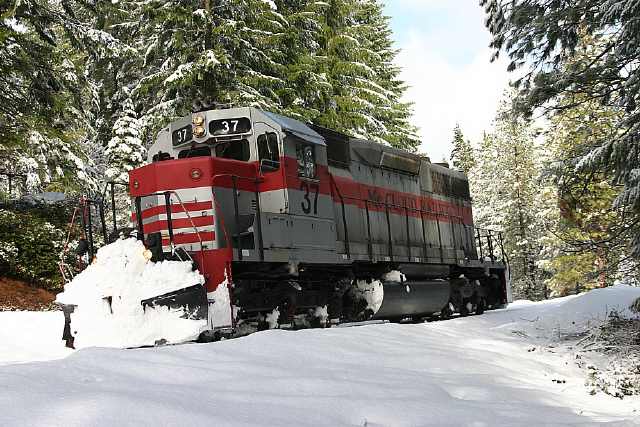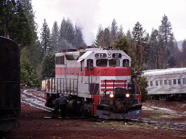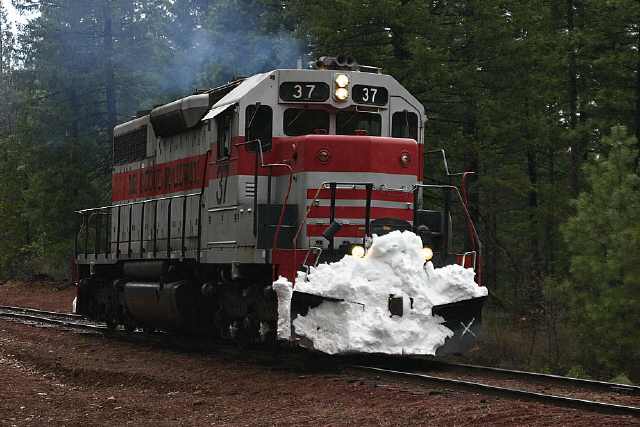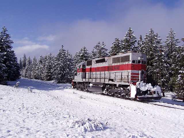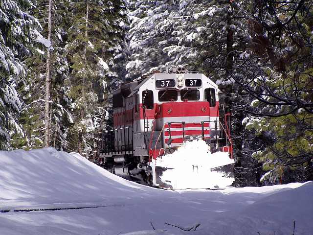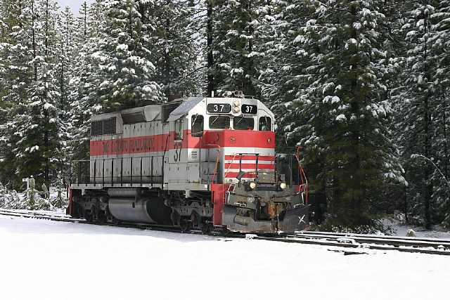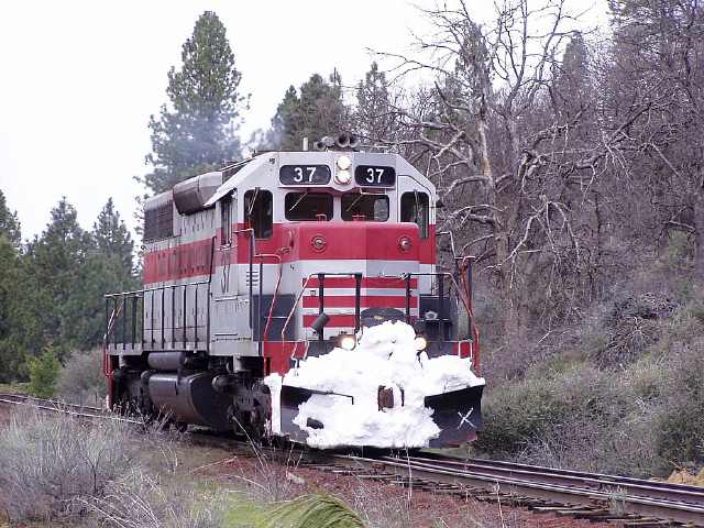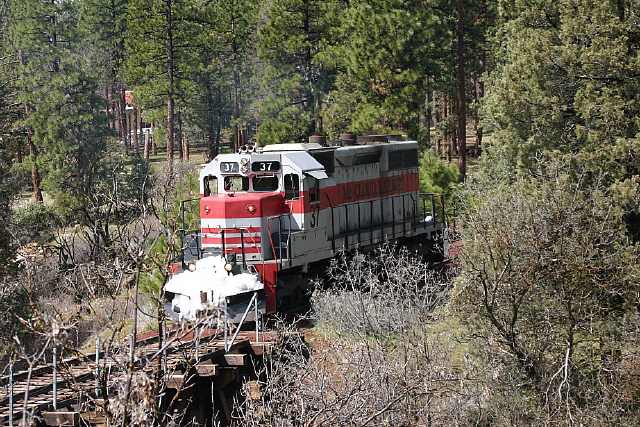 The #37 just coming off of the Burney Creek bridge on the Sierra branch. Libbi Landrock photo.