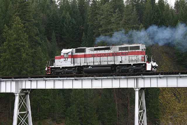 The #37 approaching the Lake Britton Bridge. George Landrock photo.