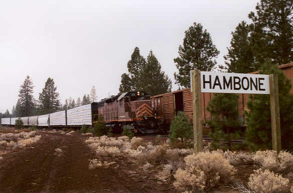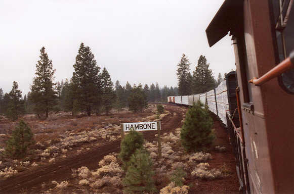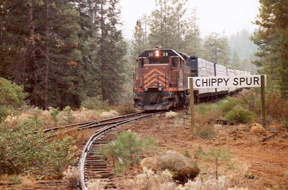 an unusually long eastbound freight...four lumber loads from the Sierra Pacific Industries sawmill in Burney