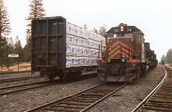 the set-out track. The seven cars in today's train are tied down, and the #38 is then cut off and switched