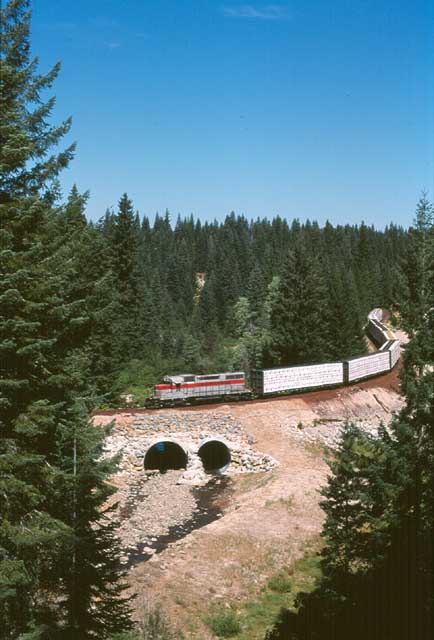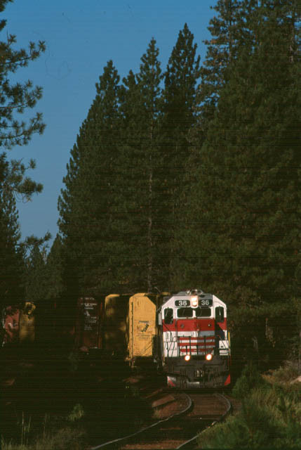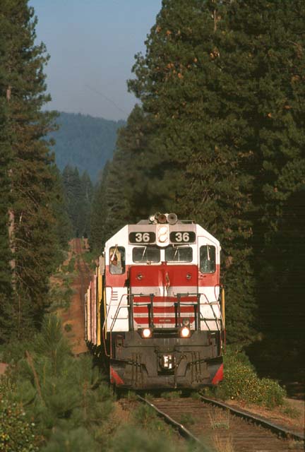 Wye onto the Sierra Branch for the 7-mile reverse movement to the Sierra Pacific sawmill.