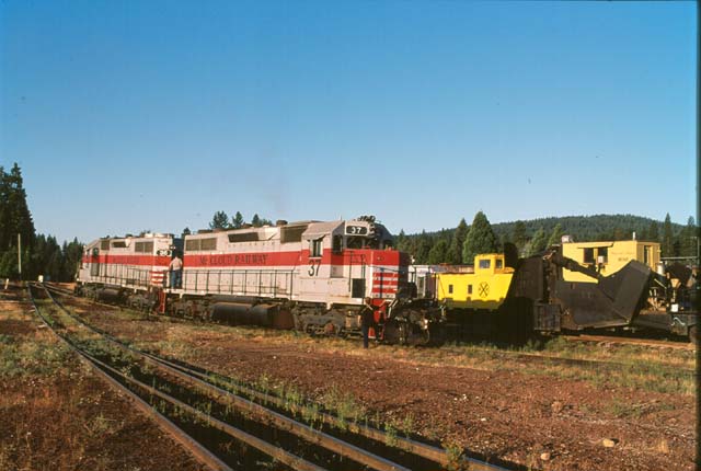two units, and as such the first task is to add the #37 onto the consist. The engineer is knocking off the