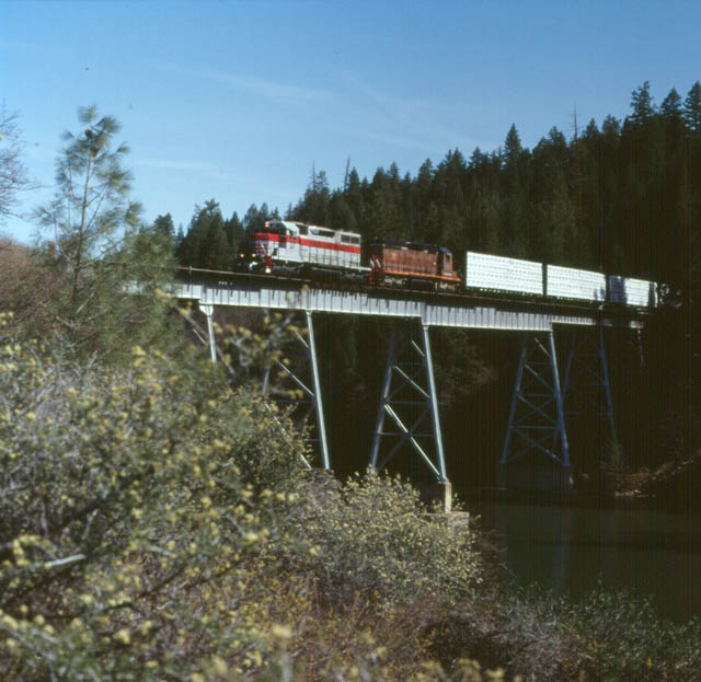 The train crossing the Lake Britton bridge.