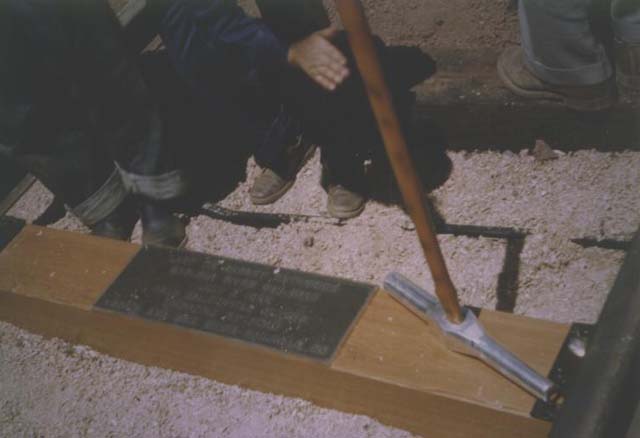 was made of redwood and was provided by the Arcata & Mad River Railroad, which at the time was the oldest continually operated railroad in the state of California. Four special spikes, two silver and two gold, were
