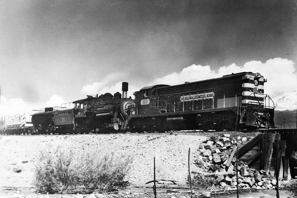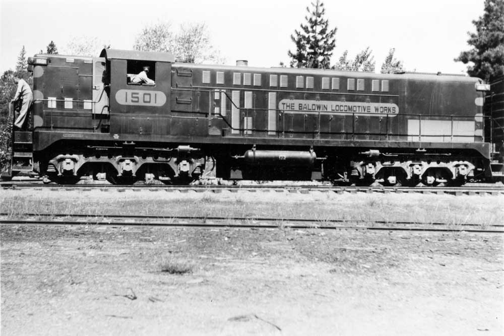Baldwin DS-4-4-750 #750 and #751 Baldwin #750 and #751 were their c/n 74814 and 74815, built. 6/1950. The units first operated in and around Philadelphia before heading to California in late summer. The units demonstrated over many railroads, including Brooks-Scanlon Lumber Company, Fruit Growers Supply Company, Longview Portland & Northern, McCloud River (in 9/1950), Medford Corporation, Northern Redwood Lumber Company, Northwestern Pacific, Pacific Electric, Pacific Lumber Company, Sierra, Southern Pacific, Weyerhaeuser, Willamina & Grande Ronde, Valley & Siletz, and Yreka Western. While operating on the Yreka Western the units hit a lumber truck at a grade crossing, killing the truck driver. At the conclusion of the demonstration tour Baldwin sold the pair to Weyerhaeuser, who used them on their logging railroads based out of Klamath Falls, Oregon, as their #101 and #102. Weyerhaeuser retired the units around 1983, with the #102 scrapped by the mid-1980s. Weyerhaeuser conveyed the #101 to the Great Western Railway Museum, which placed it in storage in the former Oregon, California & Eastern yards in Klamath Falls, Oregon. The Oregon Coast Scenic Railroad of Garibaldi, Oregon, acquired the #101 in late 2021 along with the rest of the Great Western collection, but the railroad does not plan to retain the locomotive and efforts are underway to convey it to another owner and display site in the area. Baldwin intended the pair to promote their forthcoming S-8 and S-12 model switchers, and they fit the mold that several manufacturers were trying to sell, namely switcher type locomotives that could be operated either as single units or in multiple unit configuratipn to haul heavier trains or deal with steeper grades. McCloud had already considered and then rejected that concept when it decided to buy the #28, but reconsidered that decision. The performance of the two demonstrators may have gone a long way towards the decision to buy the two switchers from Baldwin a few years later.