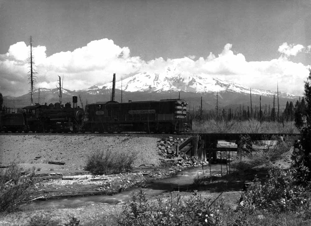 The #1501 made at least one trip east of McCloud on a freight with the #15, seen here at Mud Creek. Travis Berryman collection. ![]()
