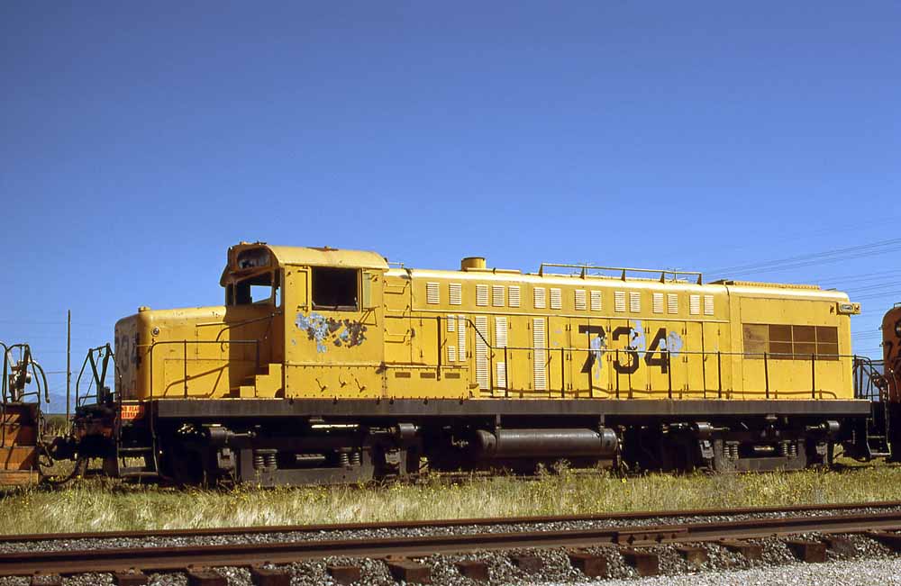 Kennecott #734 sitting derelict in Salt Lake City on 4 September 1983, shortly before being scrapped. James C. Herold photo. ![]()