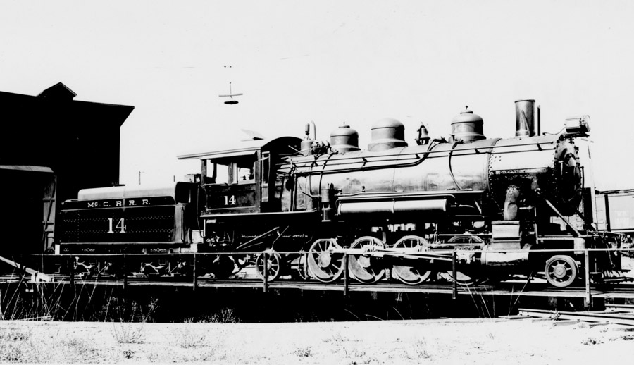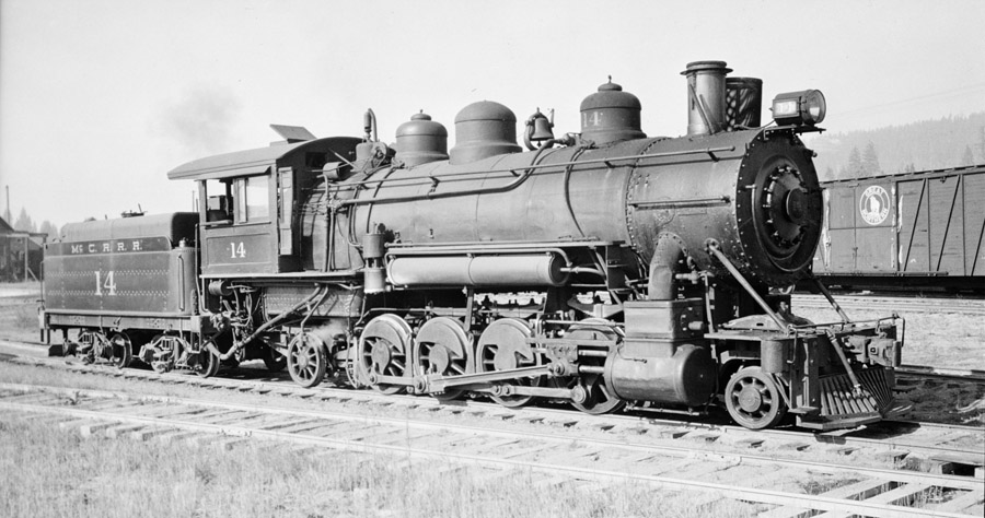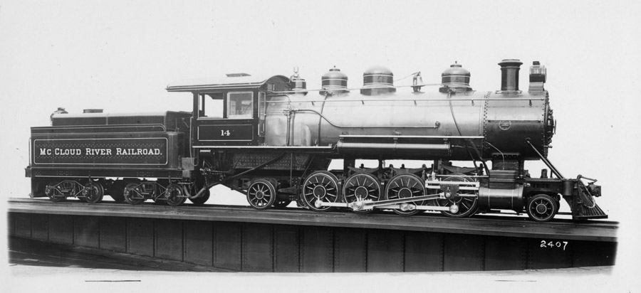 McCloud River Railroad Company Locomotive #14 Baldwin 2-8-2 Built- 5/1907 c/n- 30850 Drivers- 48" Cylinders- 20x28 Weight- 179,000 lbs. Boiler pressure- 180 lbs. Tractive effort- 35,700 lbs. |