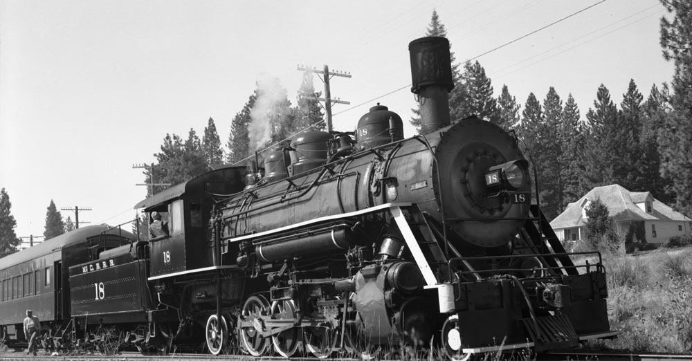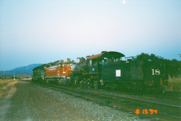 The #18 with a passenger excursion at the McCloud depot on 25 August 1952. Jeff Moore collection.