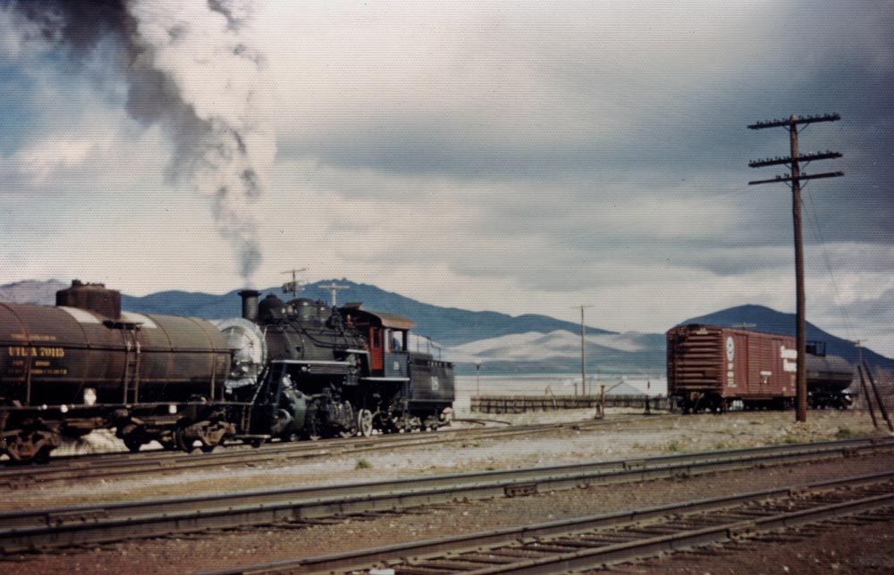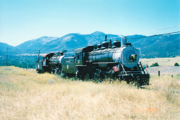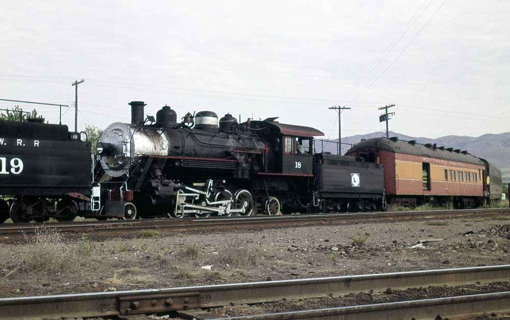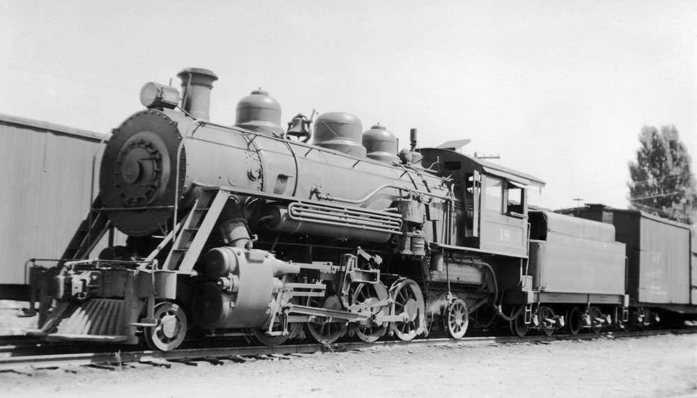 The Yreka Western used the #18 on a number of railfan excursions between its arrival on the line and 1964. It is seen here arriving in Montague on a double head excursion with the #19. Jeff Moore collection.