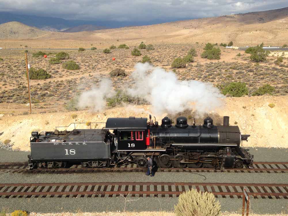 Another photo of the #18, this one on the rebuilt Virginia & Truckee at Eastgate, Nevada, in October 2015. The locomotive's boiler certification expired shortly after this photo.