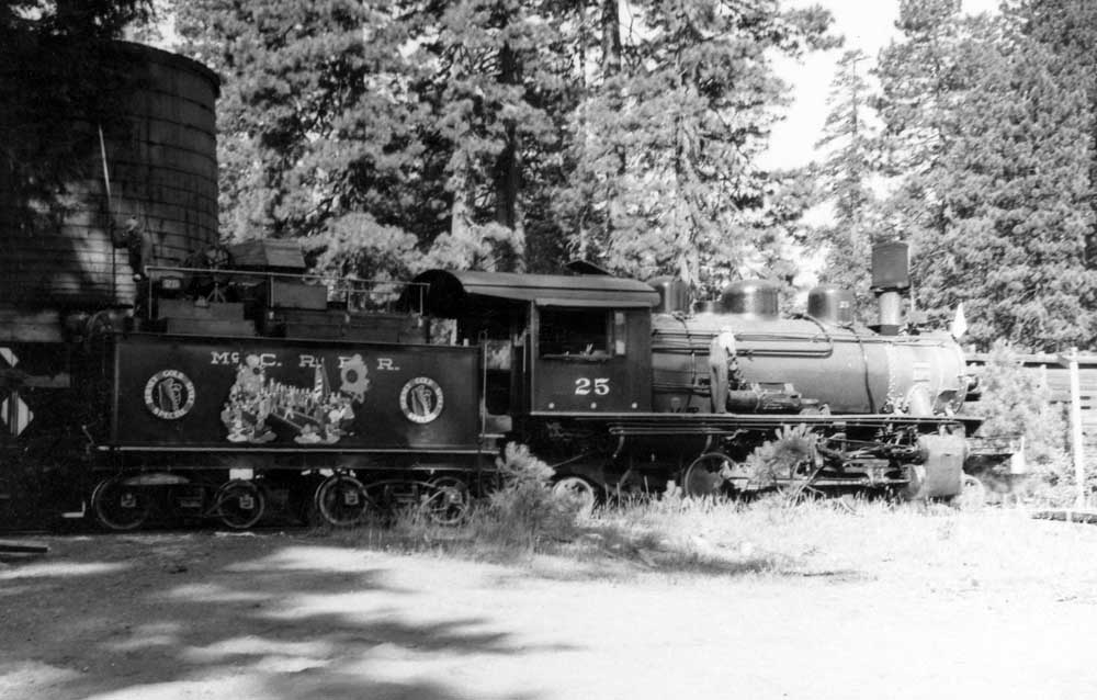 Another shot of the #25 in McCloud. Note the two hose reels have been mounted on the back of the tender. Jerry Lamper collection.