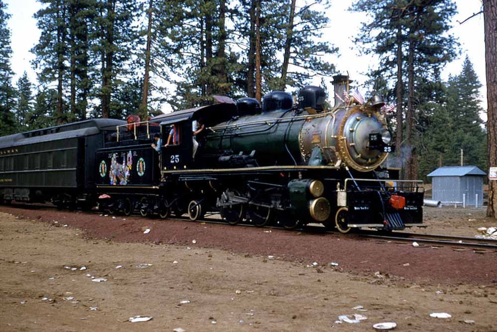 In 1955 the railroad plucked the #25 out of the woods and gave it this special paint job in honor of completing the Burney line. The #25 led the Golden Spike excursion from McCloud to Burney and back.