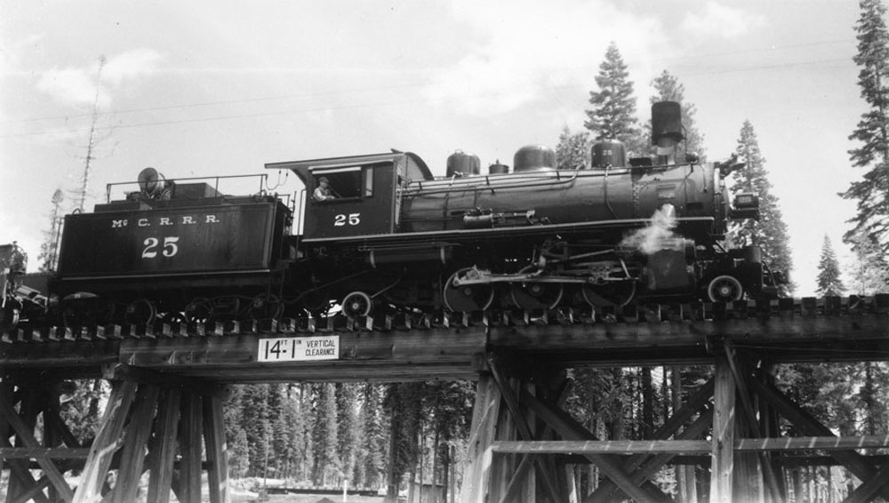 The #25 crossing the trestle over Highway 89 a few miles south of Pondosa. Jerry Lamper collection.