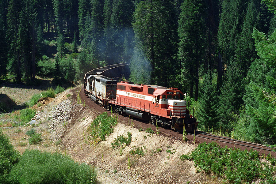 The limited amount of arable land in most of the McCloud River country restricted the ability of the area to support agricultural pursuits. The lumber company did grow hay for its horse herds in the valley not far south of McCloud, but one had to go quite a distance south and east of McCloud to find any land capable of supporting farming on any sort of scale. The Fall River and Big valleys contained soils suitable for vast farm fields, with smaller areas found in Goose and Cayton valleys. Despite this, the McCloud River Railroad and McCloud Railway did generate substantial revenues from agricultural traffic at several points during its history. Early Agricultural Traffic The McCloud River Railroad became the closest railhead to the prime farmlands of Fall River and Big valleys when it reached McCloud, and even more so when the railhead extended to Bartle in 1905. That McCloud River Railroad became embroiled in a few rate disputes over flour, mixed grain, milled products, and hay shipped through Bartle in the middle 1910s indicates the railroad handled at least some amount of this traffic. One of the more unusual agricultural commodoties McCloud handled in this same time period was several carloads each year of wine grapes brought into McCloud so its Italian employees could produce wine. Livestock Livestock shipments are deliberately left off the Early traffic section because it remained a seasonal but important source of freight revenue for about the first sixty years of operations. Prior to the early 1920s the railroad commonly hauled horses, mostly for its own use in the logging end of the operation. The horses would be moved between the woods and the ranches and pastures south of McCloud, plus transporting the animals bought and sold on and off the property. Far more important and common were the vast herds of mostly sheep and some cows that summered in the forests east of McCloud and wintered in the Central Valley south of Redding, mostly in the Red Bluff area. To handle this traffic, the McCloud River Railroad built and operated several livestock pens and other facilities at various points on the line, including the following: - Pens in south end of McCloud, built 1911 and retired 1942. - Pens and two loading chutes, built 1942 about four or so miles east of McCloud. - Unspecified facilities on a spur at Esperanza that was in place 1914-1936. - Pens at Dry Creek, built 1911 and retired 1927. - Pens and scale built at Bartle in 1911 and retired 1956. - Livestock yard, 48'x116', 4 pens, single chute, built 1932 and retired circa 1956 at Hambone. - Livestock corrals, 96'x122', 3 pens, 40' loading chute, 2 water troughs, built 1928 at Pondosa. Livestock movements gradually shifted to trucks and likely ceased altogether by the end of the 1950s. Other Both the Pit River Railroad and the Burney line came close to the Fall River Valley, but neither appeared to have handled much in the way of agricultural products from that region with one exception covered below. The Burney line did generate occassional carloads of farm equipment bound for dealers in the Fall River Valley, usually unloaded at the PVA yard at the end of tracks in Burney. The one major exception to the agricultural traffic from the valleys east of Burney the railroad generated came in 1993-1995 when the McCloud Railway Company handled carloads of sugar beets grown in the Fall River and Big valleys and destined for the Spreckles plant in Woodland. Spreckles loaded the cars in the PVA yard at the east end of Burney, using a small Trackmobile to switch the loadout. McCloud Railway hauled the beets to the Southern Pacific interchange in Mt. Shasta City, usually gathering the loads together in 50-60 car unit trains for delivery. The traffic produced 250 loads in 1993, 320 loads in 1994, and 200 loads in 1995. By the fall of 1996 only 600 acres remained in sugar beets in the area and the Burney reload was never used again. The McCloud Railway did generate one other agricultral movement in the same time frame as the sugar beets, carloads of wheat shipped by Goose Valley Ranch just north of Burney. The ranch loaded the wheat cars on the Sierra branch about halfway between the Sierra Pacific Industries sawmill and the Berry wye. Since they didn't have a spur, the railroad would leave the empty cars on the branch. Trains heading for the mill would couple the loaded cars onto the end of the train while backing down to the mill, then switch the loads so they were ahead of the caboose at the mill. Any empties would be behind the caboose as the train left the mill, and they would be cut off at the loader. McCloud hauled the wheat loads out to the BN interchange at Lookout Junction. The traffic produced maybe a dozen cars a year in the 1993-1995 time frame and then too ended. |