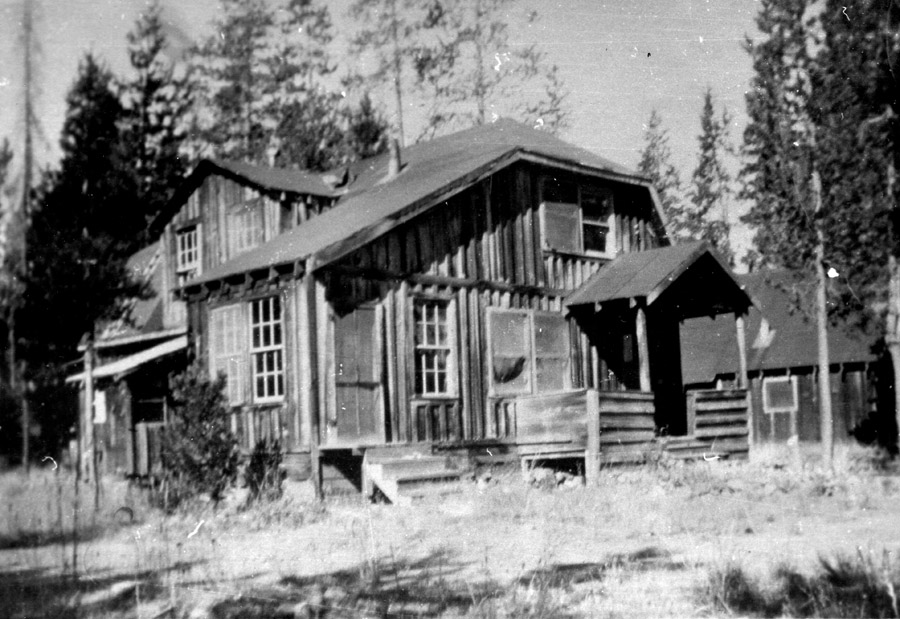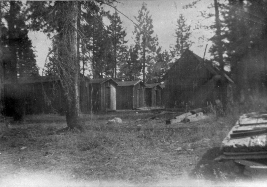 Ira Wood, who purchased the Elkins mill and camp site after the sawmill burned, is seen here standing in the doorway of one of the structures. |