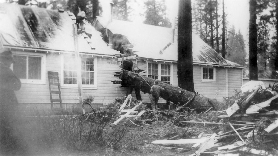 A tree fell into this house the Horr Family occupied in Pondosa. Dennis Sullivan collection. |