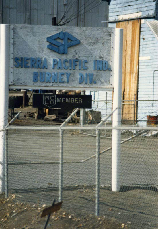 Scott Lumber Company The Burney basin contained vast stands of forests that remained mostly untapped until long after most of the other forests in the area had been cut over. The lack of transportation played a large part in this, with a secondary factor being that the Red River Lumber Company owned most of the best stands. The Red River planned to eventually harvest this timber for its own purposes, and as such it did not sell it to anyone else. On 15 December 1936 George Scott purchased a plot of land west of the town. The property had played a large part in the history of the town, as a general store and the first post office had stood on it for many years. On 21 January 1937 Mr. Scott purchased sawmill equipment from the Pensacola Company of Pinedale, California. By this point several others had become associated with the project, including Carl Phelps, John Fossett, John Berry, and Raymond Berry. These me incorporated the Scott Lumber Company in 1938 to take over the properties. The Scott Lumber Company eventually came to control 25,000 acres of timberland, with 17,000 of those acres purchased from Red River. Two logging sides fed the mill, with the company operating one and the other contracted out to gypos. The Scott Lumber Company came into existence at a time when acceptable roads started snaking their way into the Burney basin, which made trucking lumber to outside markets feasible. However, the company realized that it would be in a better position if it had rail service. The nearest railhead lay at Pondosa, two dozen or so miles up Highway 89. Scott soon had a deal worked out with the McCloud River Railroad to establish a reload near Pondosa, and the Scott Lumber Company soon became an important shipper on the railroad. The Scott mill continued to grow and prosper. The plant continued to expand, with a planer, dry kilns, two chippers, a bark product plant, and a printing press added to the sawmill. The plant finally gained direct rail service in 1955 after the McCloud River Railroad completed construction of its line into the Burney basin. The mainline of the railroad ended on the opposite side of town from the mill, and the railroad and lumber companies jointly built the seven mile long Scott branch. The Scott Lumber Company lasted until 1969, when the company sold out to Publishers Forest Products. Publishers Forest Products In 1969 Publishers Forest Products, a subsidiary of Times Mirror, purchased the Scott Lumber Company. Publishers ownership brought a period of stability and prosperity to the sawmill and the town of Burney. The new owners made many improvements to the properties, including a quad mill. The sawmill produced a little shy of 100 million board feet of lumber each year, which made it one of the largest sawmills in the area. The Publishers remained the largest shipper the railroad had in Burney. The good times lasted for nine years. In 1978 the company sent shockwaves through the local community when it closed the Burney mill. Sierra Pacific Industries Shortly after the sawmill closed Times Mirror sold it, along with 69,000 acres of timberland, to Sierra Pacific Industries for $36 million. SPI had roots in the California timber industry going back to the 1920's, with Archie Aldis (Red) Emmerson and J.B. Crook incorporating the current company in 1969. J.B. Crook left the company in 1974, with the Emmerson family taking complete ownership of the company at that time. Unfortunately, SPI purchased the Burney sawmill at the about the worst possible time. A series of interest rate hikes essentially stopped most construction work, which crippled the timber industry. Sierra Pacific Industries operated the sawmill only sporadically for the first several years they had it. However, by early 1982 conditions improved enough to allow SPI to resume curtailed operations, with the size and output of the mill expanding as conditions continued to improve. SPI's Burney mill provided the bulk of the outbound traffic originated by the McCloud River Railroad and McCloud Railway companies in the years since. The plant continued to grow and expand, with a large co-generation plant built in 1989 and an even larger one constructed in 2006. The plant shipped mostly lumber out over the railroad, with woodchips added from 1993 until the early 2000s. SPI started bypassing the McCloud Railway in 2004 by establishing a new reload on the BNSF at Nubieber; however, the company continued to ship over the McCloud until a $1,000 per carload surcharge prompted SPI to switch to trucks at the end of June 2006. All products now leave SPI on trucks, with rail shipments loaded onto railcars at reloads on the BNSF in Nubieber or the UP in Anderson, CA. Click here for Sierra Pacific Industries website