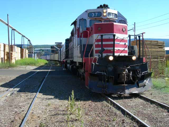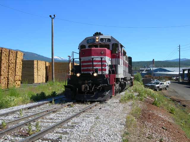 Below are several photos of McCloud Railway #37 doing some switching chores in the mill in the second week of June 2006. |