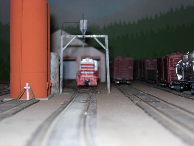 The sand tower and fuel tank in McCloud, with the shop in the background. |