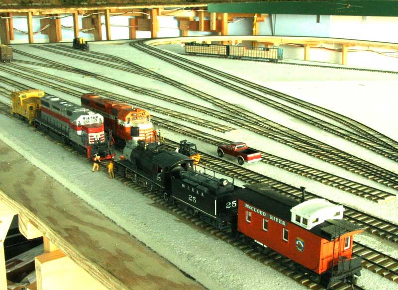 On 29 March 2008, Lee Christopher drove the "Golden Spike" on his McCloud Railway layout. Lee has been at work on the layout for four and a half years now. The event called for a proper ceremony. |