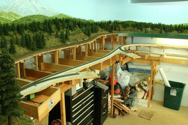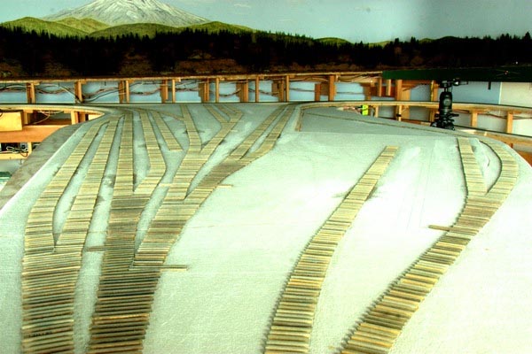 The framework that will support the McCloud yard has been built. The loop in the distance will represent the Cayton and Lake Britton areas. |