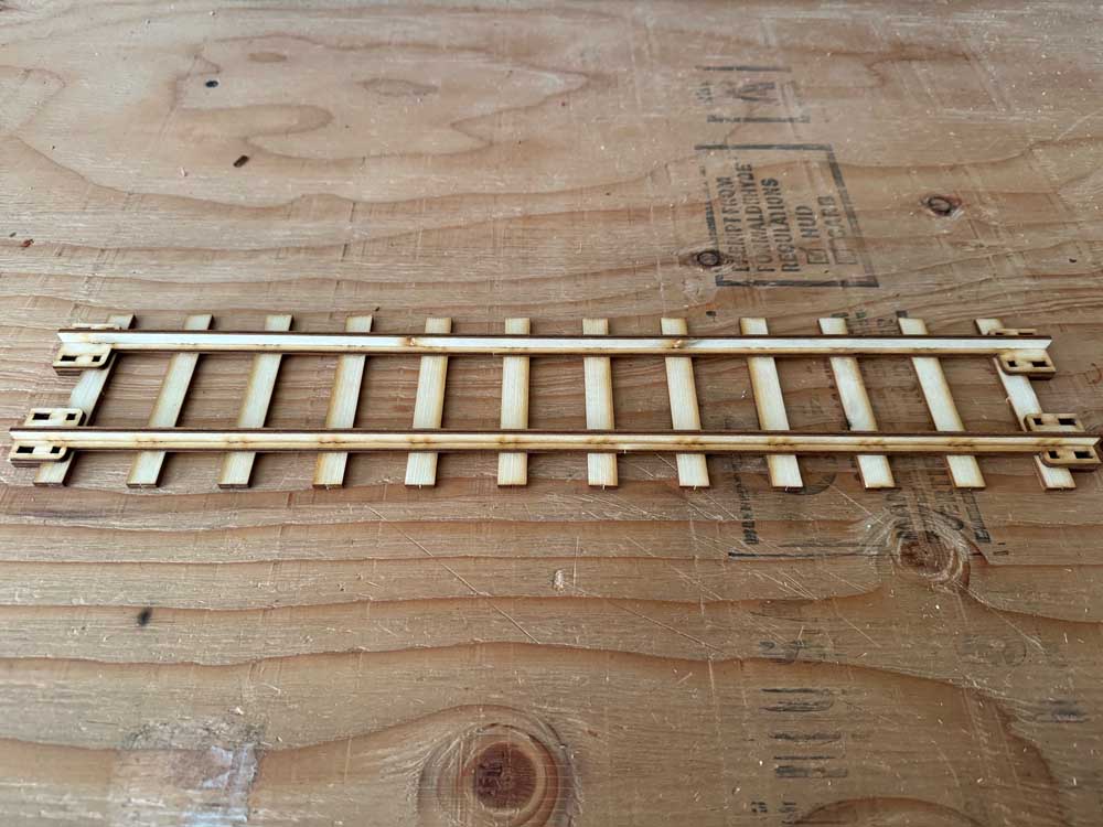 One of the three pieces of display track included with the kit. Not shown are the track joiners that hold the completed track pieces together. |