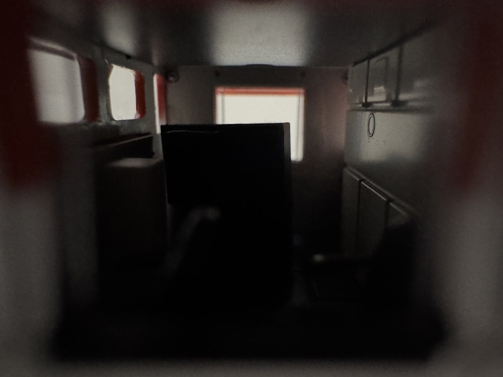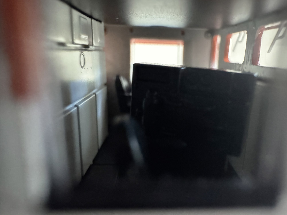 railroad repainted them orange. ![]() Rear of the model. ![]() While hard to photograph, the model does have a full cab interior. This view is looking through the engineer's window. ![]() Looking in through the window on the fireman's side. |